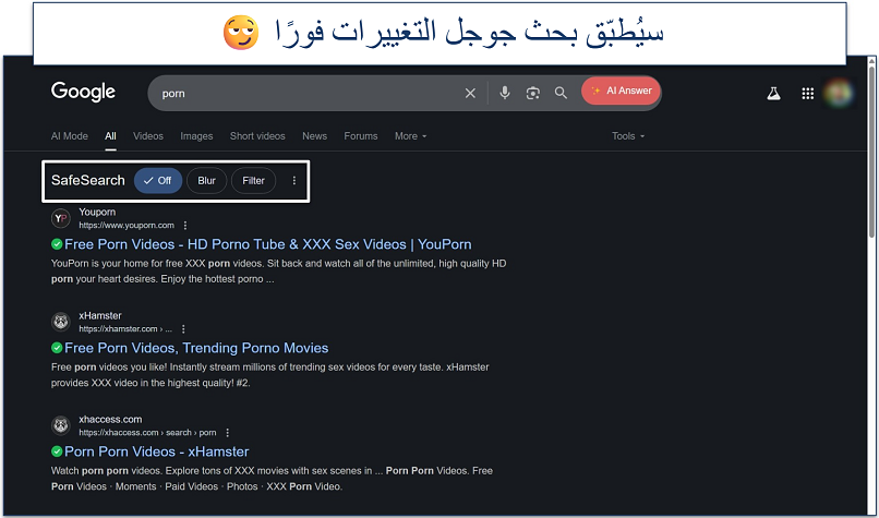 بدلاً من ذلك، لديك خيار طمس الصور المتعلقة بالإباحية في النتائج
